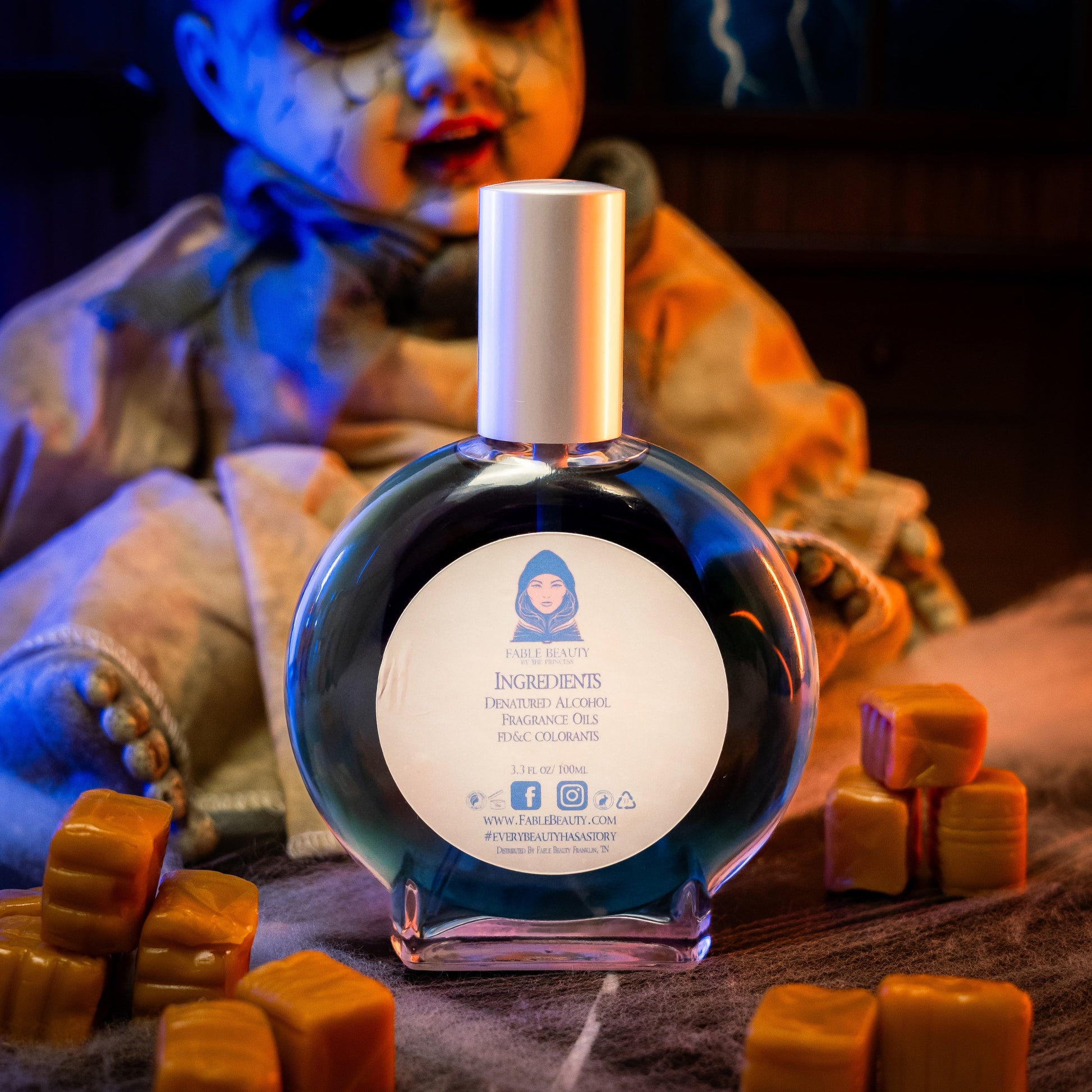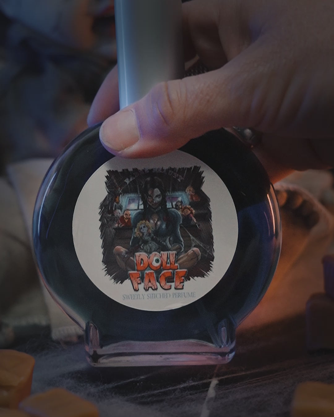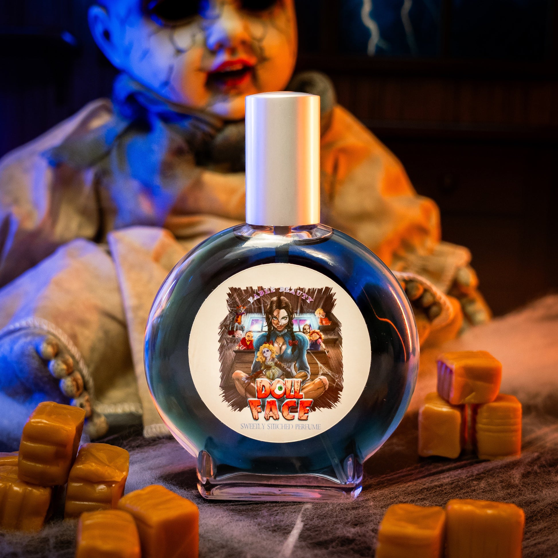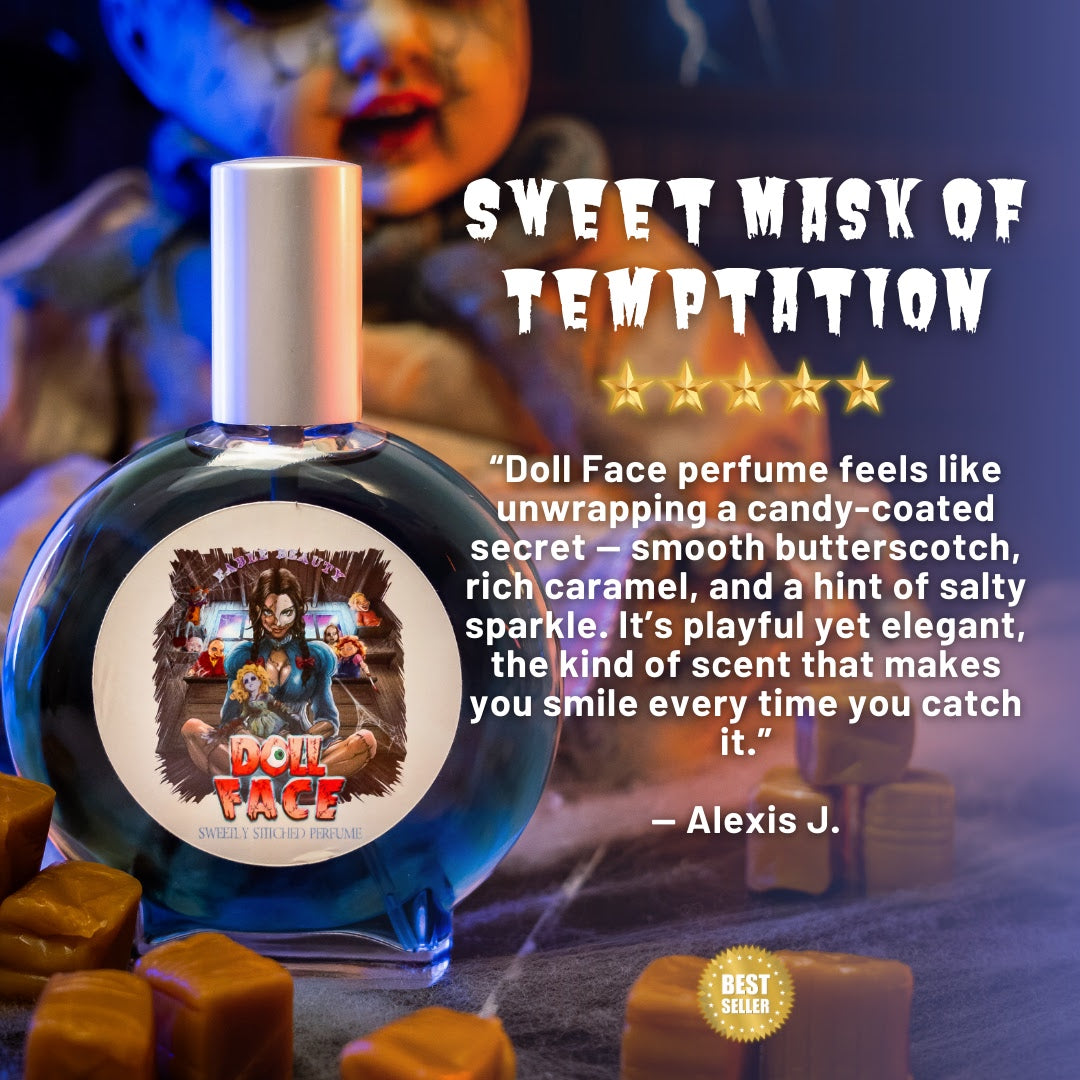 Crafted in the USA and phthalate-free, Doll Face is a spellbinding 100ml perfume elixir that weaves together the golden sweetness of butterscotch candies, the silky depth of decadent caramel, and the crystalline edge of flaky sea salt. Each spritz is both innocent and intoxicating—an unsettling balance of charm and allure.