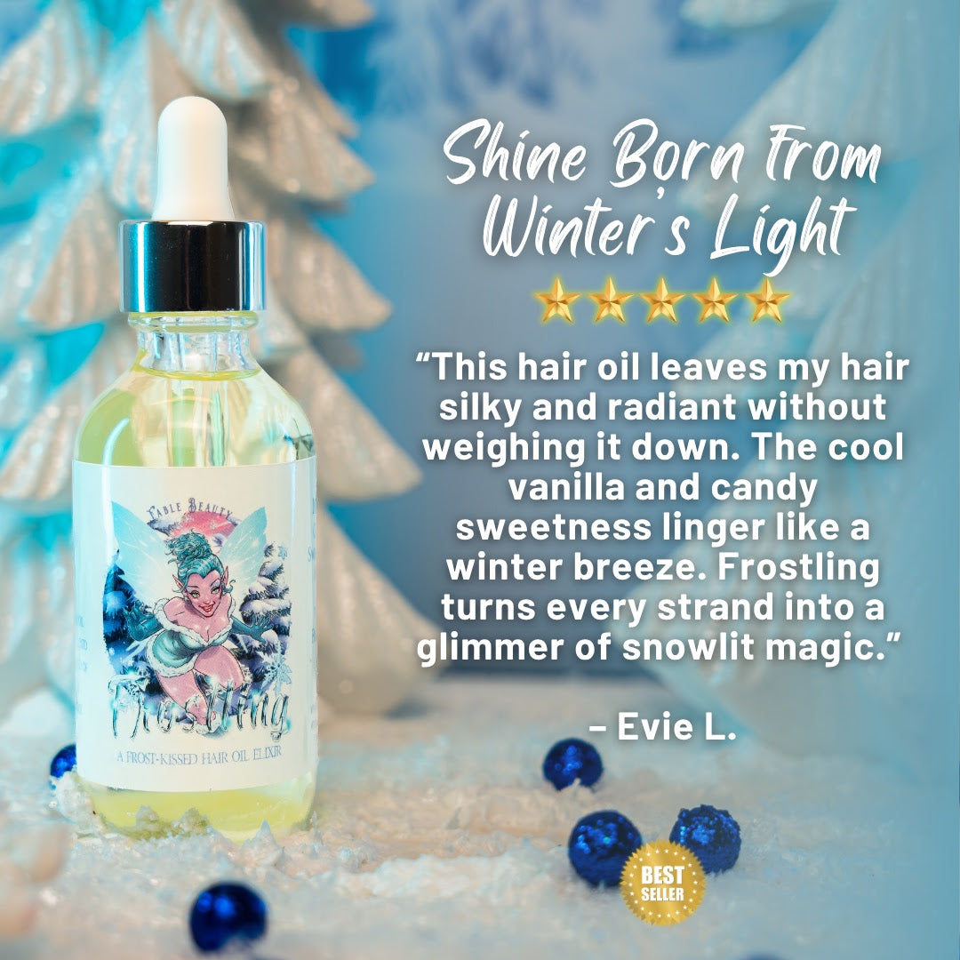 Embrace your most luminous winter hair with Frostling, Fable Beauty’s luxurious Hair Oil Elixir—a shimmering blend of frosted freshness and candy-sweet magic. Designed for silky, touchable strands and weightless nourishment, this lightweight 2oz blend deeply hydrates, smooths frizz, and leaves your hair gleaming like snow under twinkling lights.