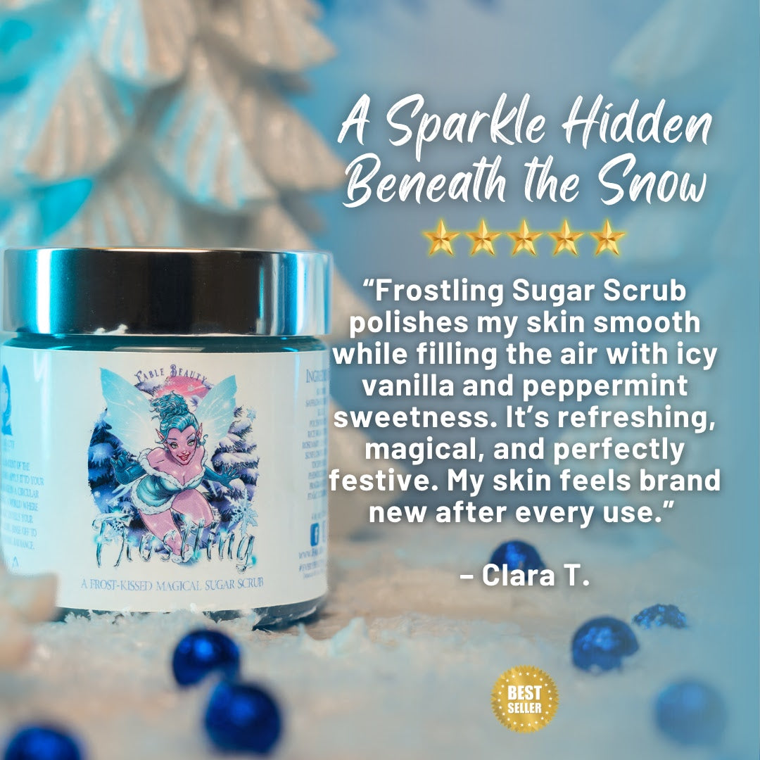 Step into a sparkling winter escape with the Frostling – Polish & Pamper Duo, a festive pairing designed to smooth, hydrate, and delight. This limited-edition set combines our Magical Sugar Scrub and Magical Body Frosting, both infused with the dreamy scent of Shimmering Snowfall, Icy Vanilla, and Sweet Candy Cane.