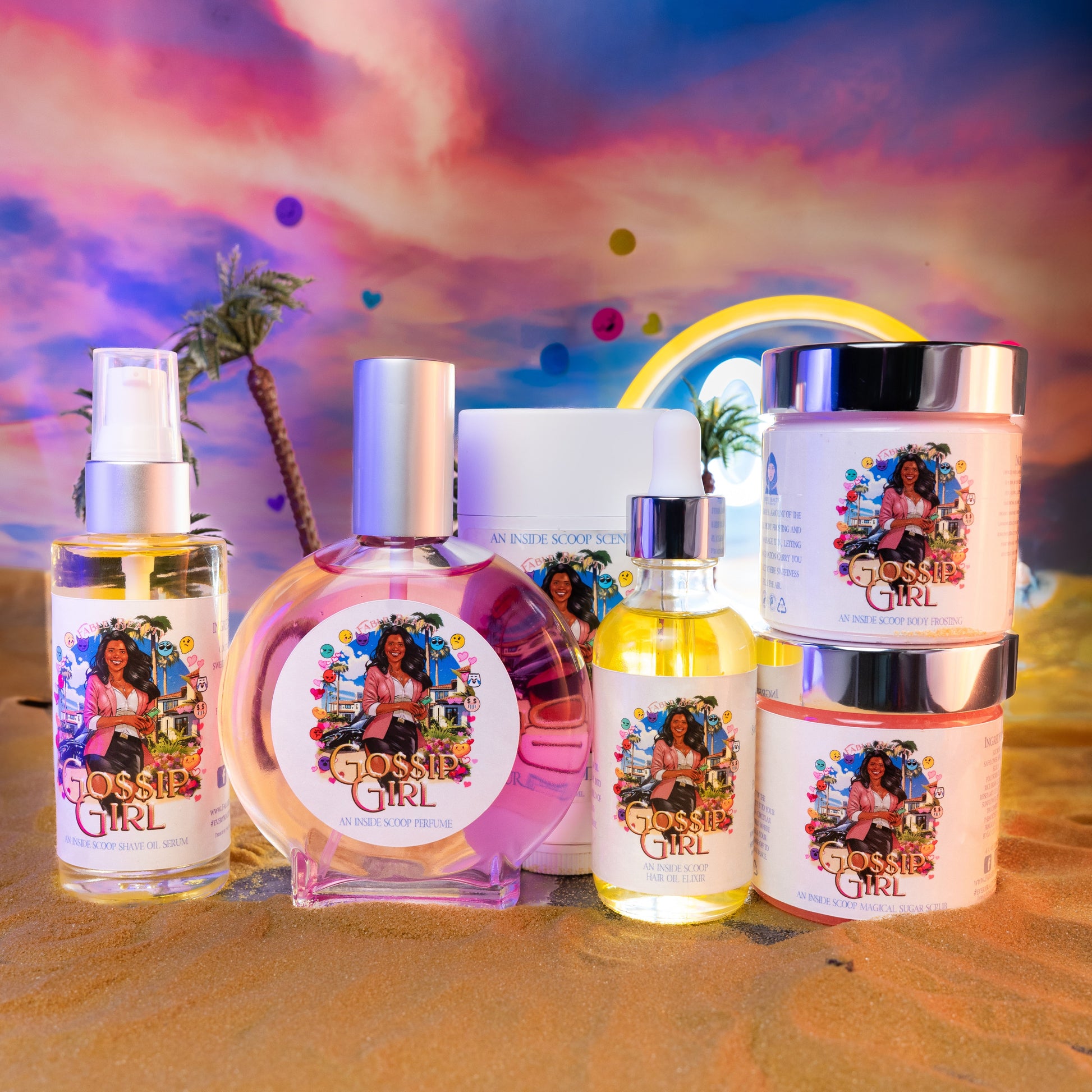 Meet Gossip Girl, the ultimate beauty set for the one who posts first, tells half the story, and always smells like trouble wrapped in tulle. Inspired by sparkling secrets, sugar-dusted whispers, and a floral-citrus scent that turns every hallway into a runway, this six-piece set is made for the glam girl who leaves hearts racing and rumors swirling.