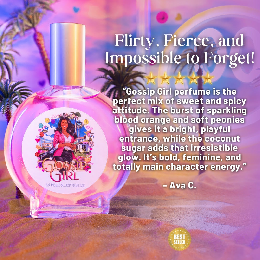 A spritz of this flirty elixir finishes the look. It’s bright, sweet, and scandal-ready—just like her.