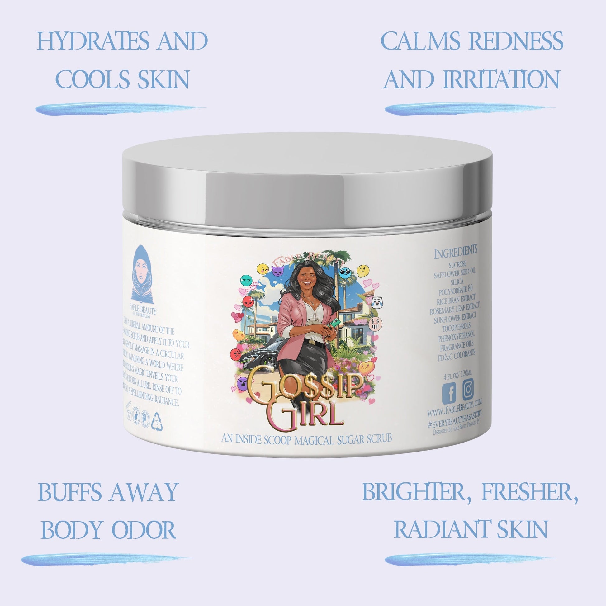 Buff out the bad press and polish up your reputation with Gossip Girl, Fable Beauty’s sparkle-forward sugar scrub made for the queen of whispers and watchers. This 4oz jar of exfoliating indulgence blends fine sugar crystals and skin-loving oils to leave your skin glowing, soft, and ready for the next scandal.