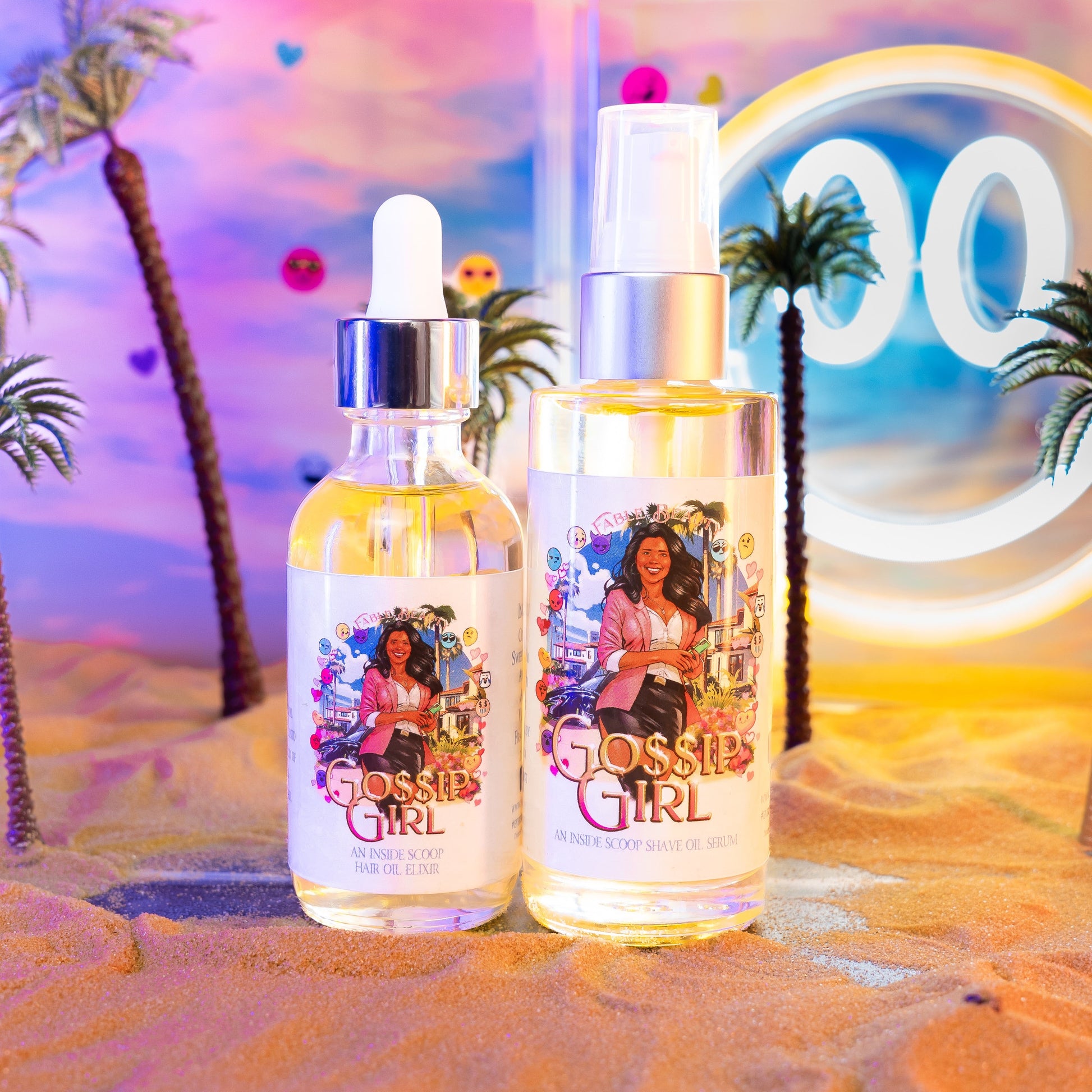 Meet Gossip Girl, the Razor & Radiance Duo made for the headline-chasing heartbreaker with flawless skin and front-page flair. Inspired by sparkling scandals, sugar-dusted secrets, and the perfect soft wave caught in paparazzi flash, this luxe pairing includes our Shave Oil Serum and Hair Oil Elixir—each in a 2oz bottle. Packed with nourishing oils and a scent that’s flirty, bright, and a little bit wicked, this duo leaves your skin smooth, your hair radiant, and your vibe high-gloss drama.
