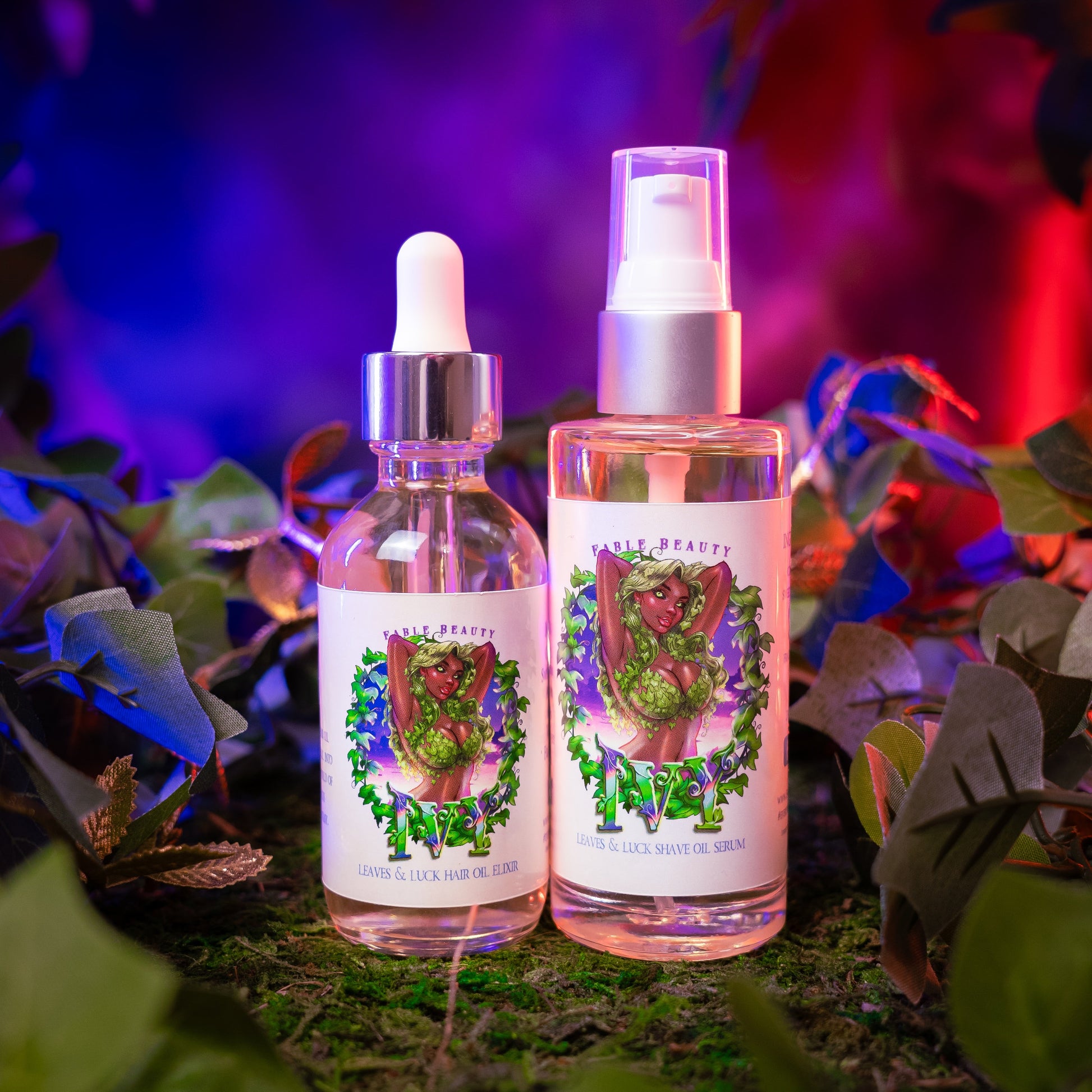 Step into the refined, captivating world of Ivy—the duo designed to deliver silken skin and radiant, touchable shine with quiet confidence. This Razor & Radiance Duo pairs our ultra-smooth Shave Oil Serum with our lightweight Hair Oil Elixir, wrapped in a softly seductive spring blend of Black Tea Leaves, Warm Vanilla Shea, and Lemon Infused Honey.