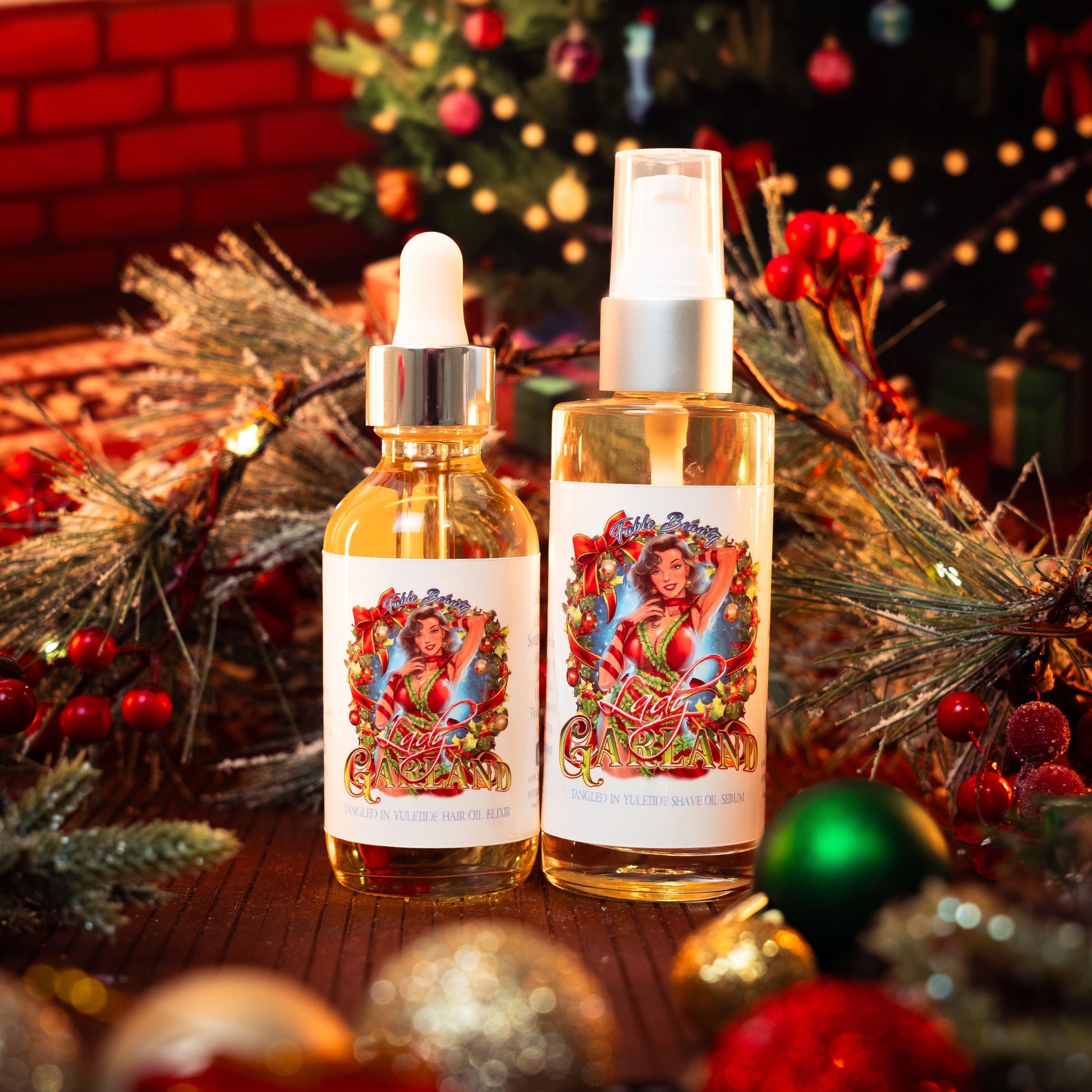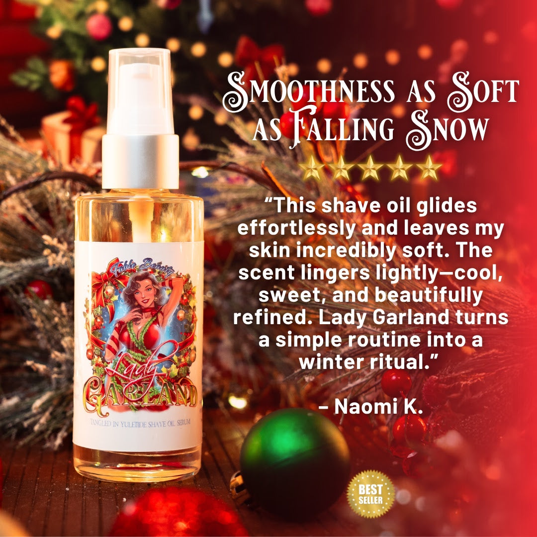 Embrace the joyful charm of winter with Lady Garland—a radiant blend of sparkling berries, crisp pine, and soft seasonal magic. This luxurious Razor & Radiance Duo pairs our ultra-nourishing Shave Oil Serum with our signature Hair Oil Elixir, wrapping you in the enchanting scent of Sugary Red Raspberries and Frosted Pine.
