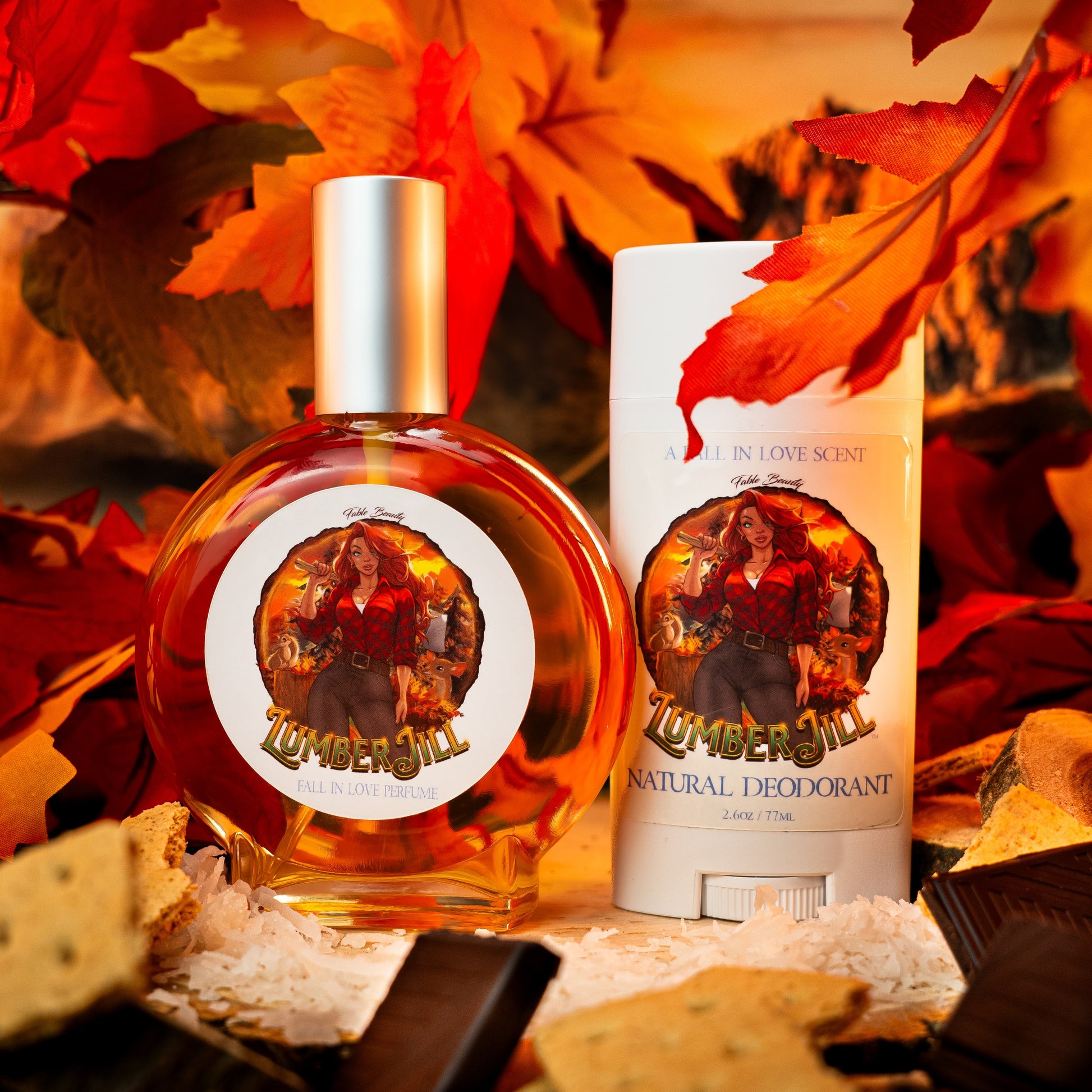 Swipe, spritz, and step into the confectionary cabin with Lumber Jill, the Fragrance & Function Duo made for the beauty who bakes from scratch, chops her own wood, and smells like a decadent dessert wrapped in wilderness charm. Featuring our aluminum-free Natural Deodorant and long-lasting Perfume Elixir, this duo keeps you feeling fresh, sweet, and softly powerful from sun-up to cabin lights out.
