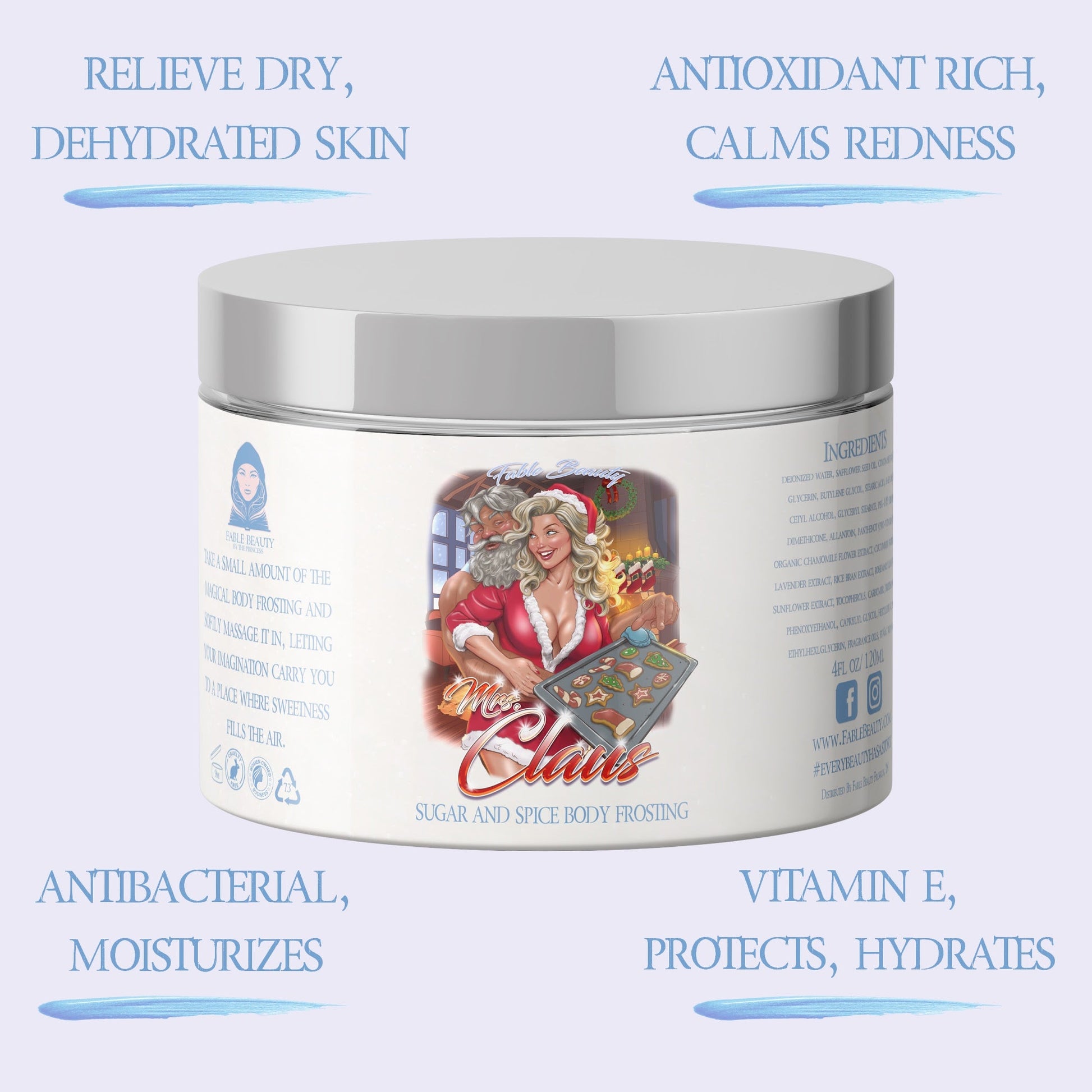 Step into the cozy radiance of Mrs. Claus—a comforting ritual for those who embody kindness, grace, and festive sparkle. The Polish & Pamper Duo by Fable Beauty transforms your self-care routine into a celebration of sweetness and joy. Featuring our Sugar Scrub and Body Frosting—each in a 4oz jar—this indulgent pairing gently exfoliates, deeply hydrates, and leaves your skin glowing with the merry warmth of Vanilla Sugar, Citrus Mist, and Peppermint Bark.