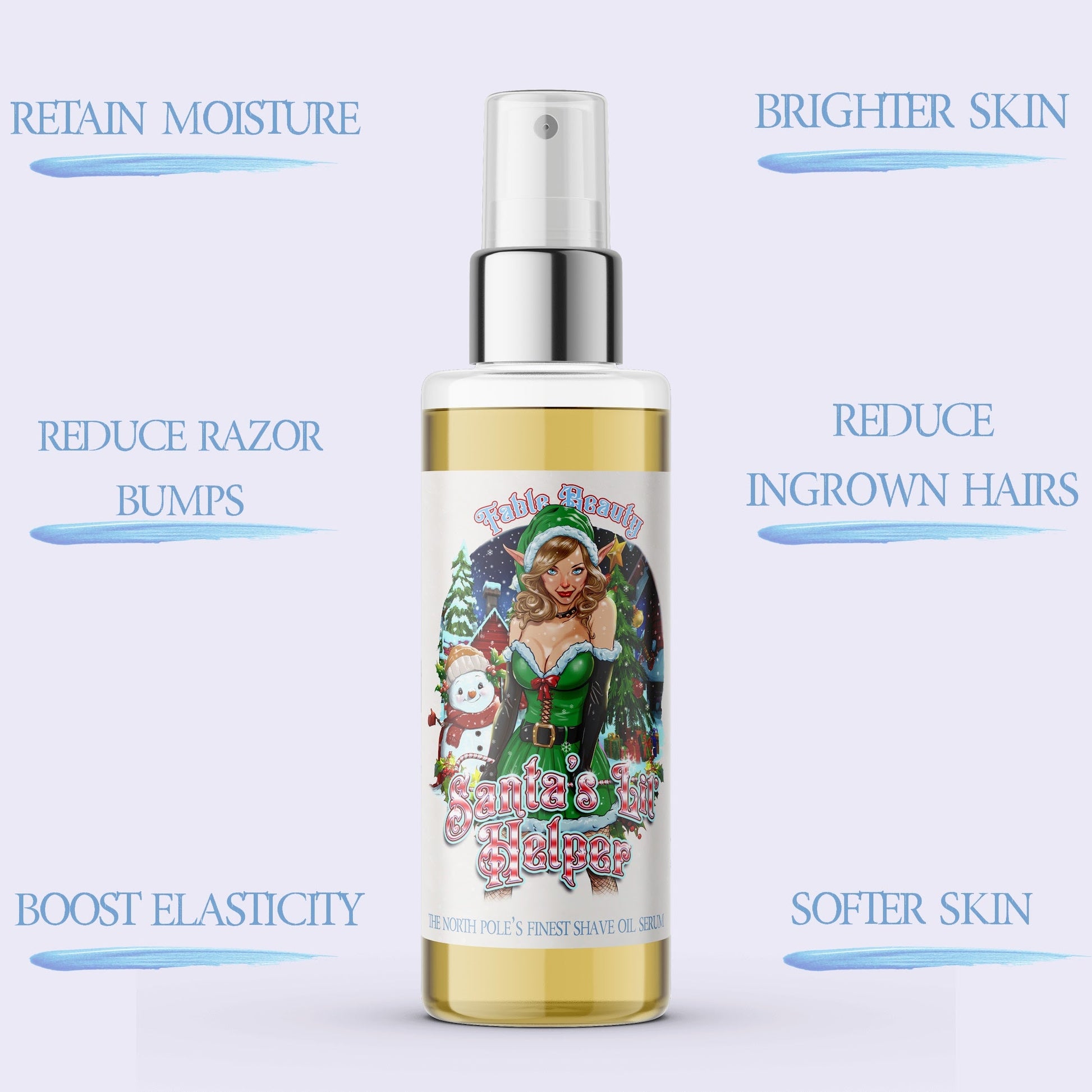 🎅 Silky Skin & Luminous Locks – Start with Santa’s Lil Helper Shave Oil Serum for a smooth, hydrating glide that leaves skin irresistibly soft. Follow with the Hair Oil Elixir to reveal touchably radiant strands kissed with festive warmth.