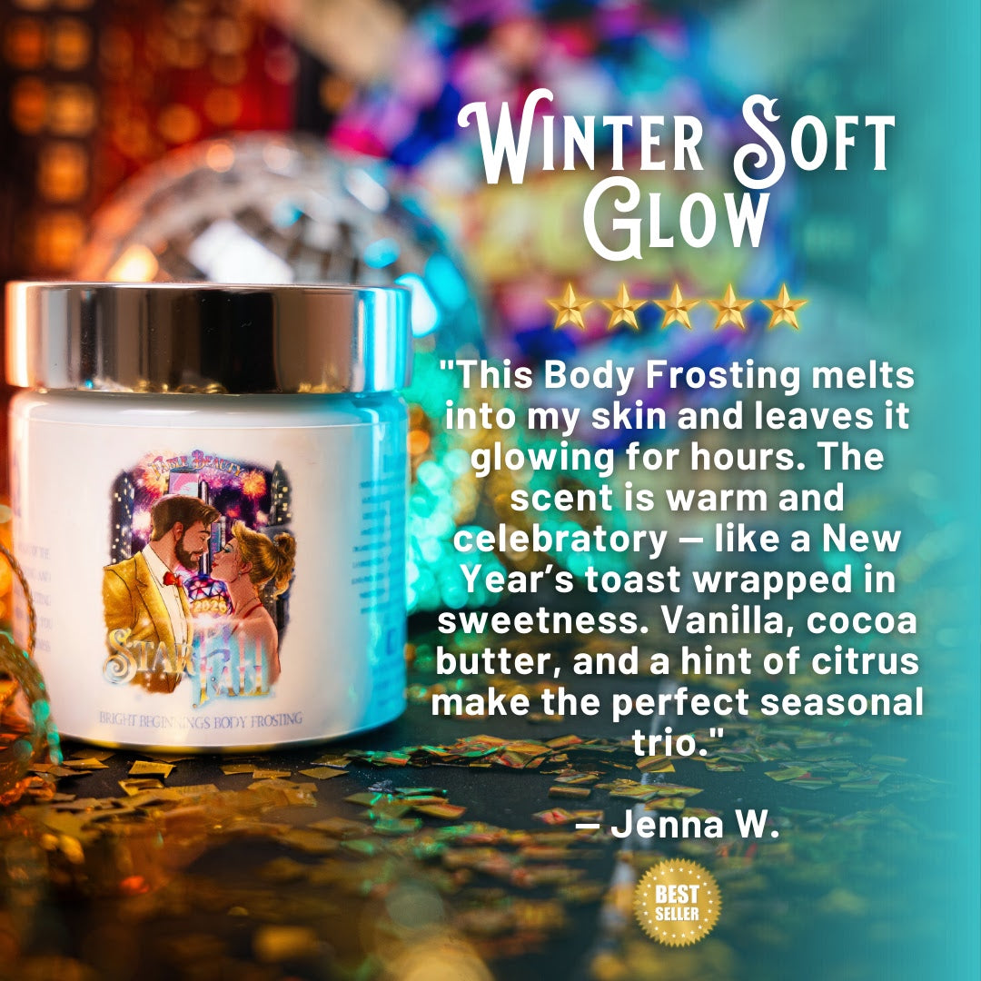 Step into the gentle glow of Starfall, the moment after midnight when the noise fades, wishes settle, and the year ahead feels calm and full of promise. This luxurious skincare duo is designed to bring comforting softness, radiant smoothness, and quiet New-Year indulgence to your self-care ritual. The set pairs our Magical Sugar Scrub and Magical Body Frosting to polish, pamper, and leave your skin silky, nourished, and softly glowing.