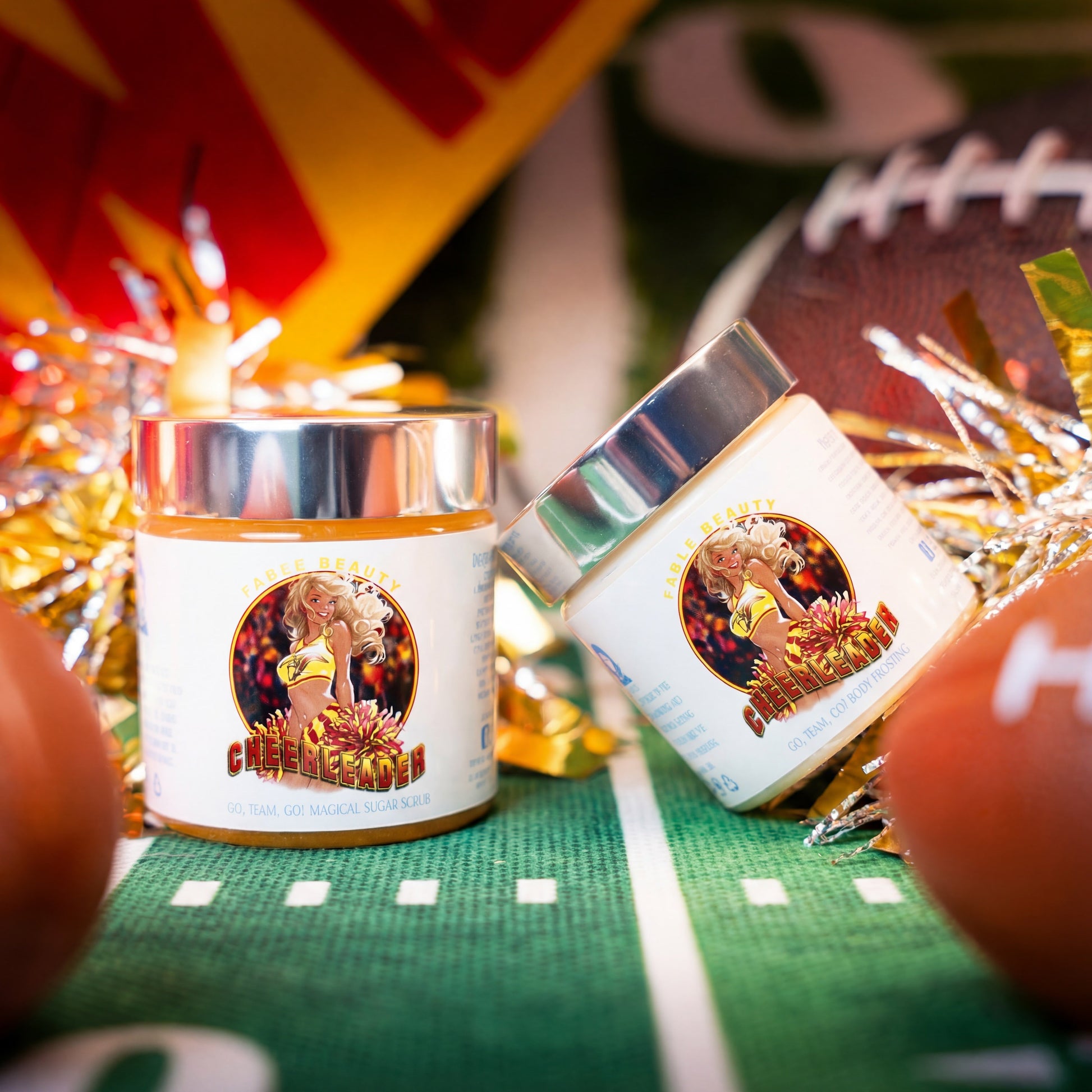 Turn your self-care into a feel-good ritual with The Cheerleader, a playful skincare duo crafted to energize your routine and leave your skin irresistibly smooth, deeply hydrated, and glowing with confidence. This uplifting set pairs our Magical Sugar Scrub and Magical Body Frosting to polish, pamper, and wrap your skin in bright, happy freshness.