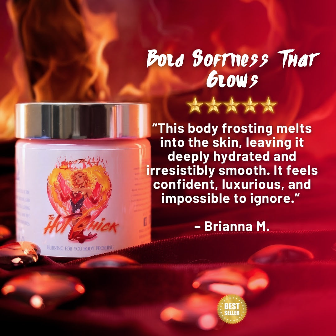 Meet The Hot Chick—the body frosting that turns hydration into a power move. This decadent 4 oz whipped Body Frosting melts into the skin with a cloud-light feel, delivering deep, lasting moisture while leaving your skin smooth, radiant, and impossible to ignore. It’s rich without heaviness, indulgent without excess—just pure, confident glow.