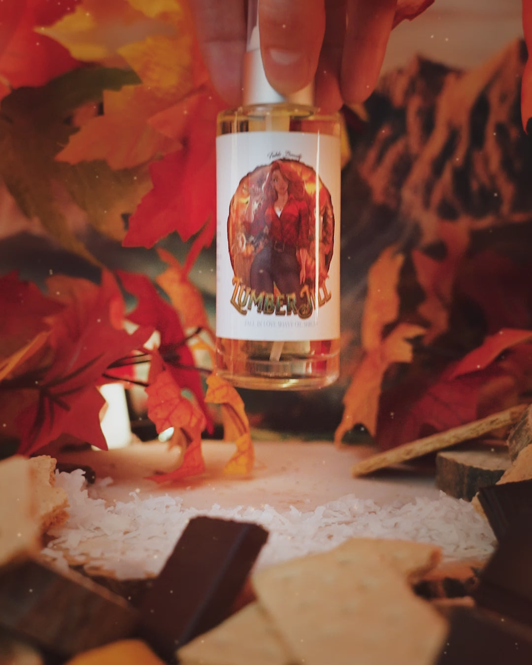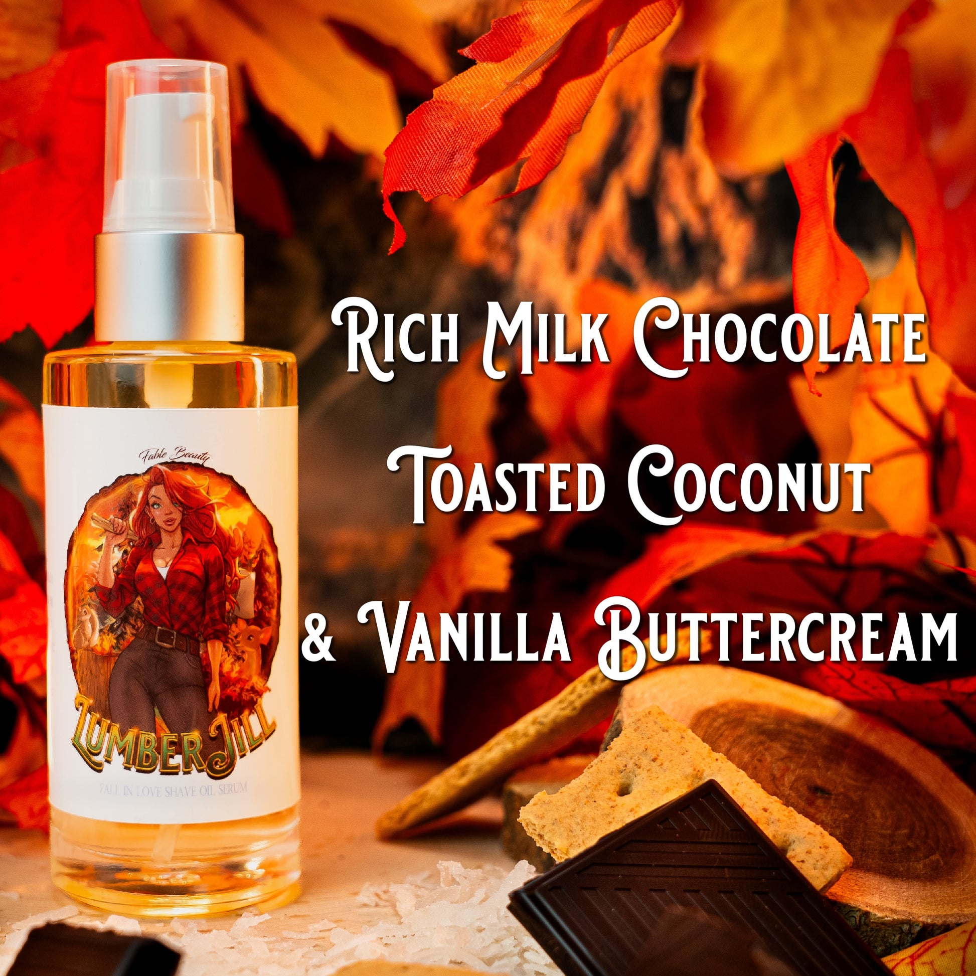 Lumber Jill Scent Profile - Rich milk chocolate with warm notes of toasted coconut, graham cracker crust, maple, vanilla, buttercream, velvet woods, and condensed milk