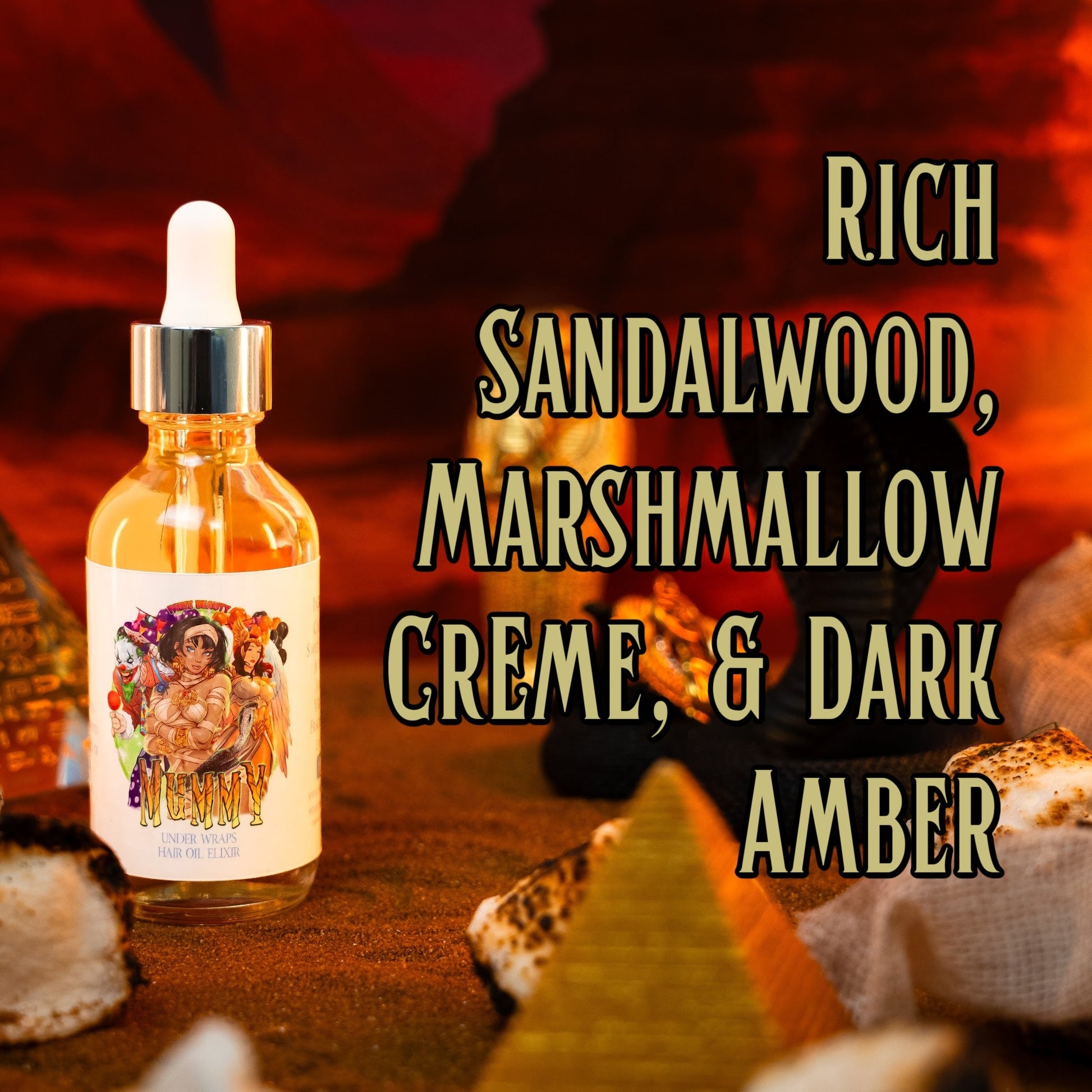 Turn your daily ritual into an ancient act of beauty with The Mummy, the Razor & Radiance Duo crafted for those who embody mystery, warmth, and timeless charm. A fragrance of rich sandalwood, creamy marshmallow crème, and dark amber, this luxurious set includes our Shave Oil Serum and Hair Oil Elixir—each in a 2oz bottle—infused with a scent both haunting and comforting. Together, they leave your skin silky, your hair luminous, and your essence wrapped in irresistible allure.