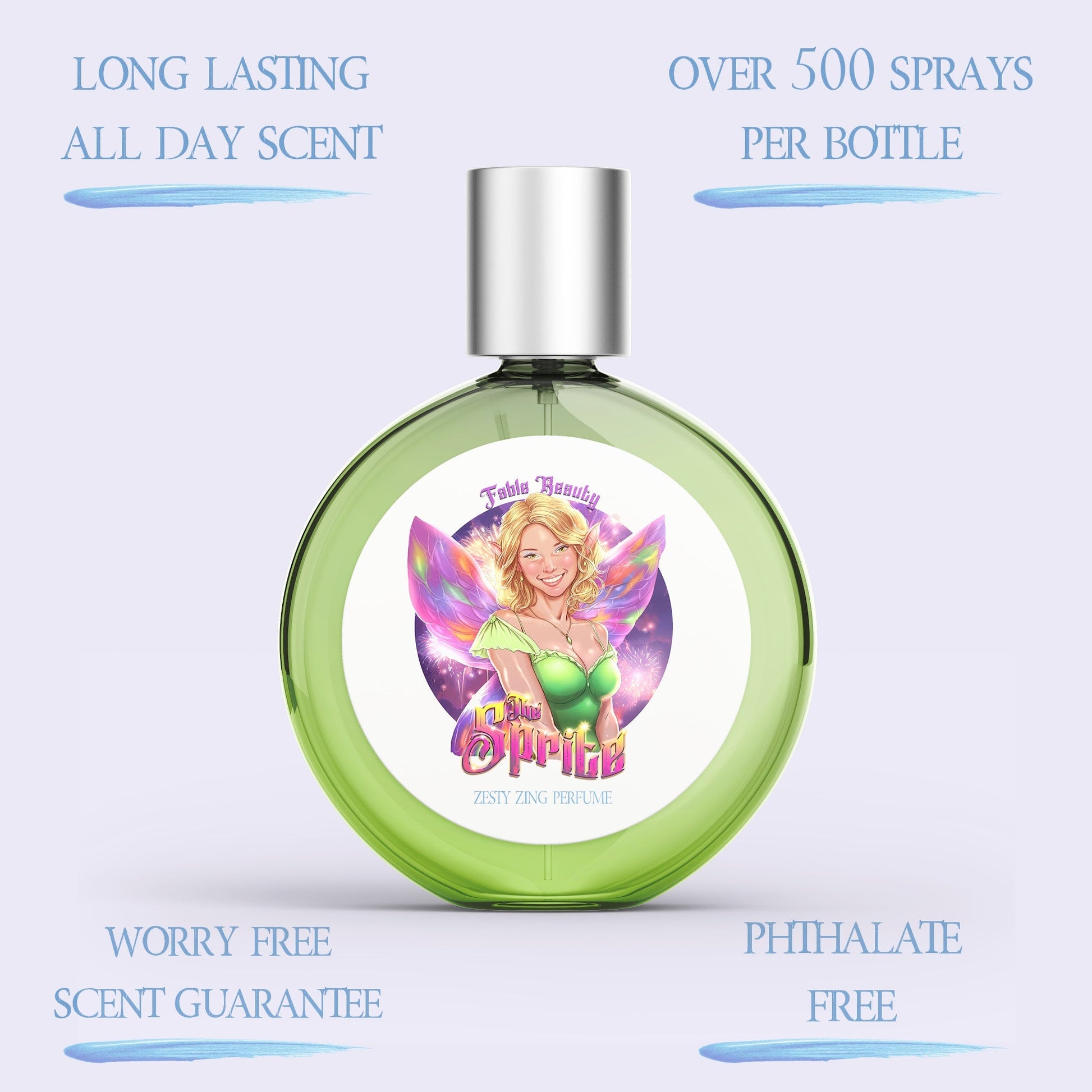 The Sprite Scent Profile - The Sprite by Fable Beauty, a fragrance that captures the essence of a mischievous fairy with an energizing burst of sweet, salty, and tart citrus for an extra kick. This playful blend combines sweet vanilla and caramel with an enticing medley of bergamot, orange, and raspberry, creating a delightful aroma that dances on the skin. As the fragrance settles, notes of fragrant lily of the valley and soft musk emerge, leaving a trail of enchantment wherever you go. Let The Sprite transport you to a whimsical world of magic and charm.