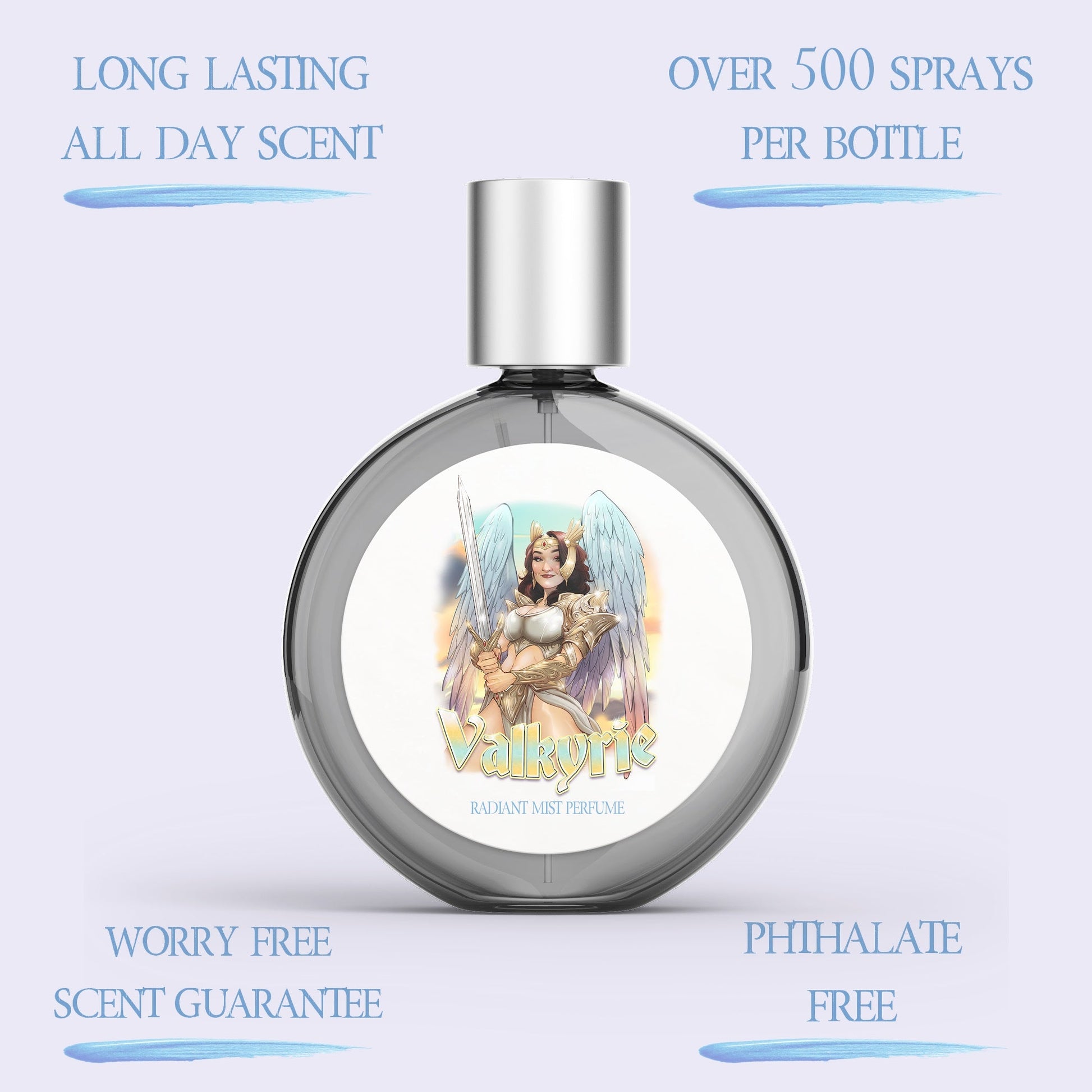 The Valkyrie Scent Profile: Immerse yourself in the enchanting elixir of The Valkyrie, a fantasy-themed fragrance where fresh flowers and light coconut merge with creamy French vanilla, mystical sandalwoods, accented by delicate rose, violet, apricot, and a whisper of creamy coconut milk, all resting on a soothing base of musk and sandalwood. This exquisite blend layers delicate floral notes with soft musk and sandalwood, creating a tantalizing aroma that conjures a serene, aromatic paradise.