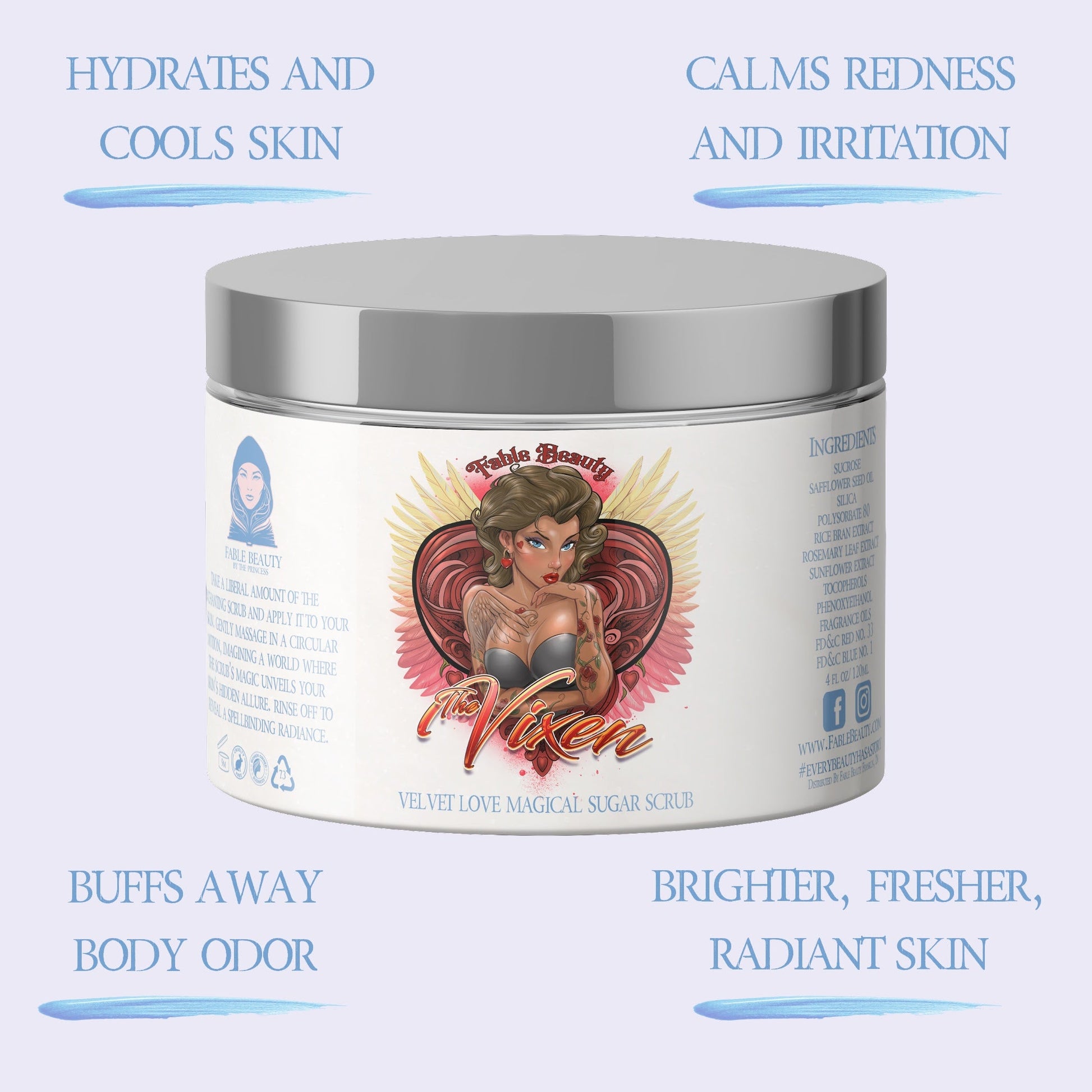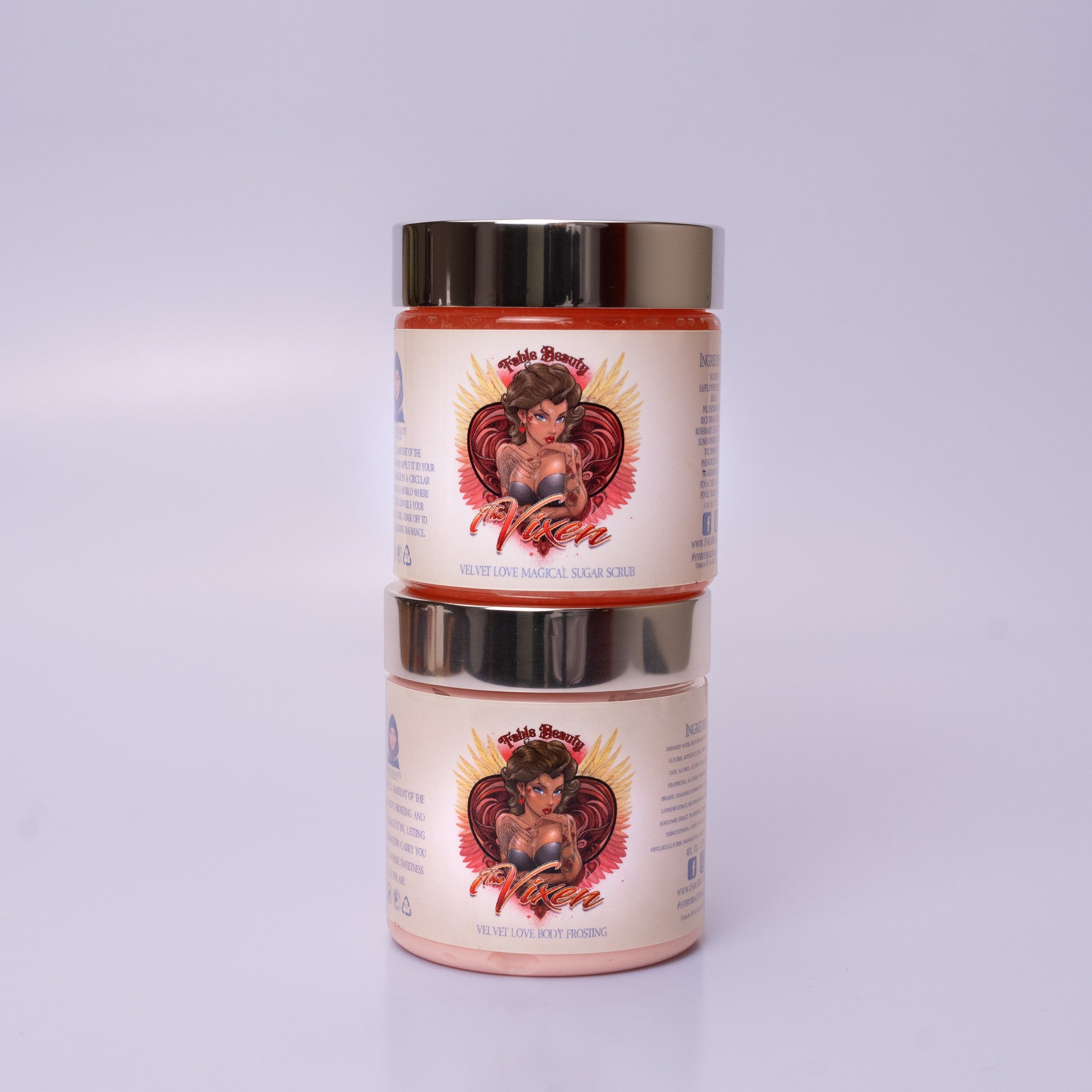 Delight in the luxurious touch of our Polish & Pamper Duo. Whether you’re revitalizing with the scrub or hydrating with the frosting, your skin will emerge from this ritual glowing, protected, and infused with the enchanting essence of The Vixen.