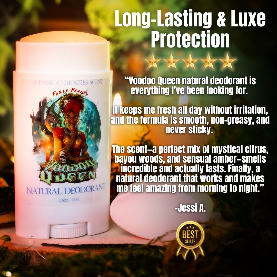 Odor Protection & Mystical Scent: Our natural deodorant provides effective odor control with ingredients like enchanted coconut oil and mystic baking soda, free from aluminum, phthalates, and talc. Complement this with our perfume elixir, which offers over 500 spritzes of the Voodoo Queen’s captivating scent, ensuring you remain alluringly fragrant.