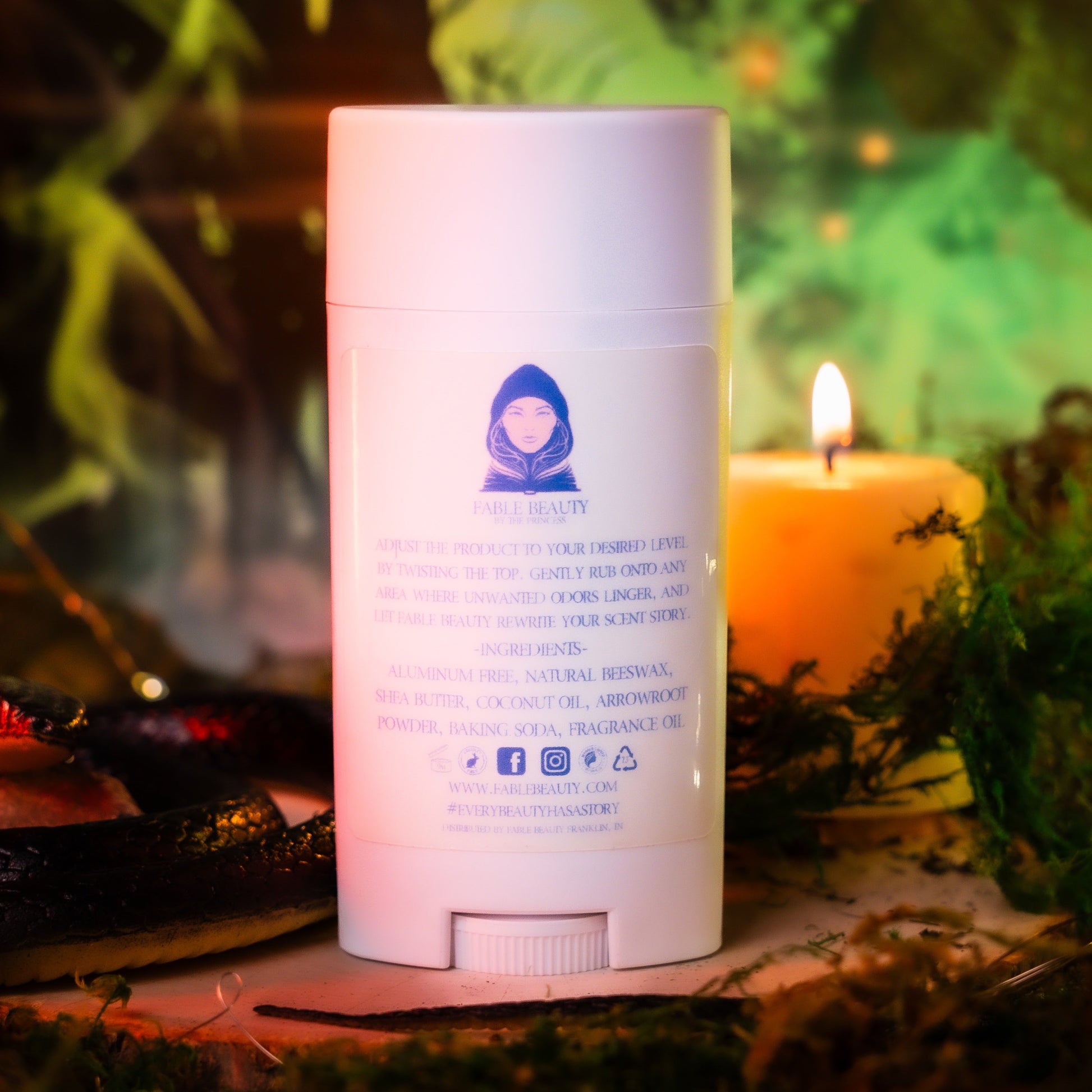 - Deodorant: Beeswax, Shea Butter, Coconut Oil, Arrowroot Powder, Baking Soda, Fragrance Oil.